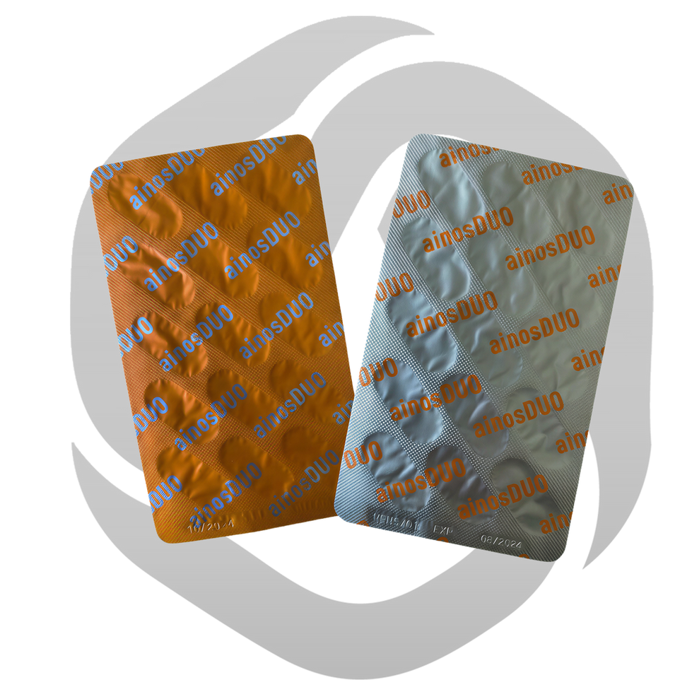 Ürün Tanımı: Ainos DUO; vitaminler, mineraller, amino asitler ve astaksantin içeren formülüyle yetişkinlerin kullanımına yönelik takviye edici gıdadır. Ainos DUO, özelleştirilmiş çift yönlü formülasyon teknolojisiyle tek bir kutuda kullanıma sunulmuştur.
